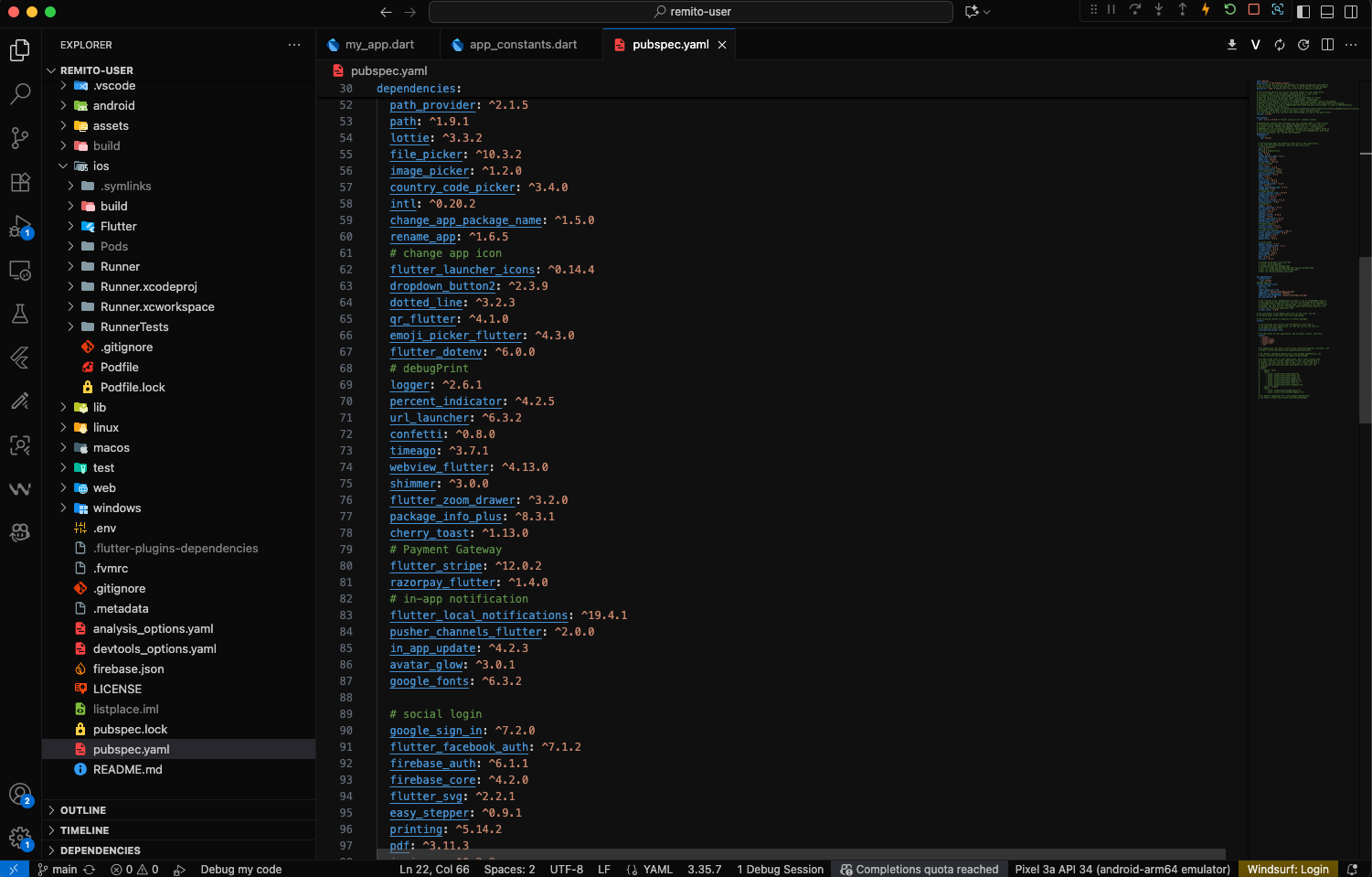 pubspecs.yamlfile then Runflutter pub getcommand on your IDE terminal or click the "Pub get" button (usually visible at the top-right in Android Studio) - We used these version for development Flutter 3.29.2