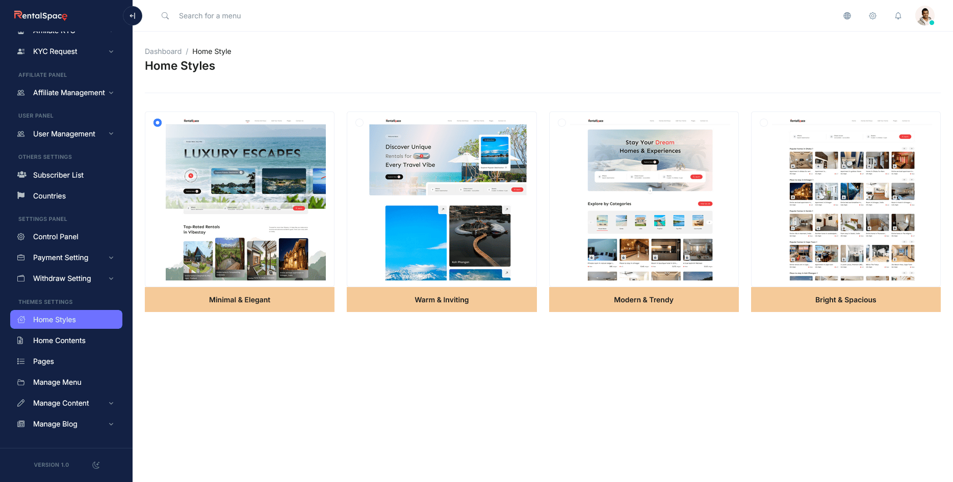 The Choose Home Style feature allows admins to personalize the landing page layout to best suit user preferences. Select from various styles to enhance navigation and create an inviting atmosphere. This customization helps ensure that users have a seamless and engaging experience from the moment they arrive!